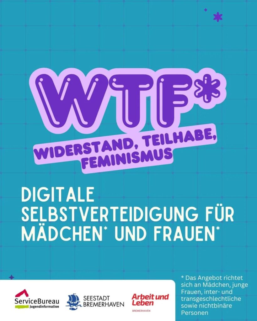 | WTF* – Digitale Selbstverteidigung für Mädchen* und Frauen* | 13.10.2025 – 12.01.2026 | Gewerkschaftshaus und Haus der Jugend, Bremerhaven | 25-02-128 |